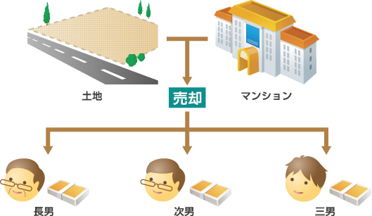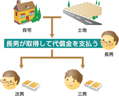 1人が財産を取得する代わりに、他の相続人に金銭を支払う。